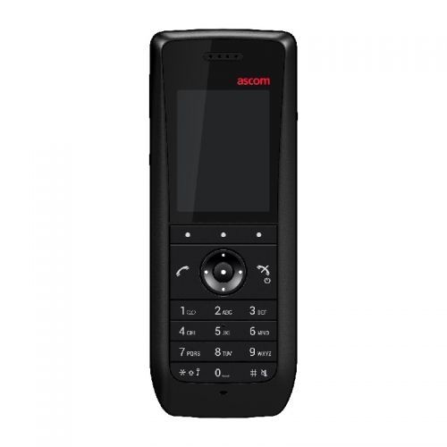 Ascom cordless dect d63 messenger light, black. Advanced DECT telephone: with wideband audio, advanced messaging and DECT pager. Black portable telephone, IP44 (waterproof), High quality voice, multicolor display, hands-free, vibration, headset connection, centralized management, advanced messaging, DECT localization, battery, user guide dimensions: 137x52x21.5 mm – weight 114 g with battery and clip.