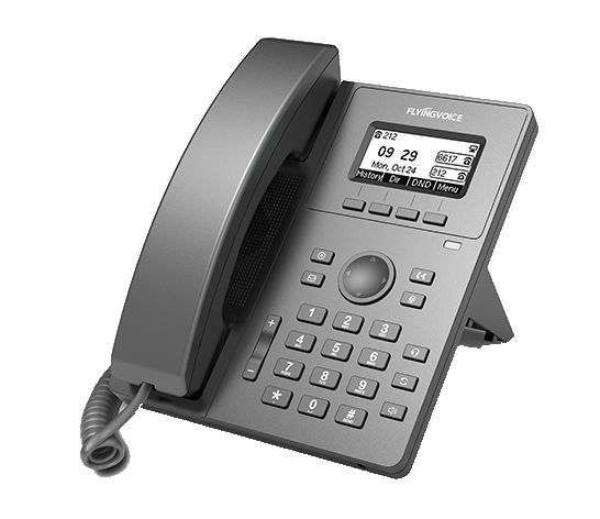 P10P Telefono IP ad alte prestazioni Flyingvoice P10P è un dispositivo di comunicazione ad alte prestazioni per utenti aziendali. Dotato di uno schermo LCD grafico da 2,3" (132x64px) con retroilluminazione regolabile su 7 livelli, che consente di acquisire informazioni in modo più efficiente anche in ambienti scarsamente illuminati. Inoltre, lo schermo può oscurarsi fino a diventare scuro, garantendo un sonno ristoratore senza distrazioni dovute alla luce notturna. Il P10P supporta 2 account SIP, doppie porte Ethernet 100M integrate e PoE per una facile connessione di rete. Interfaccia intuitiva e di facile consultazione.