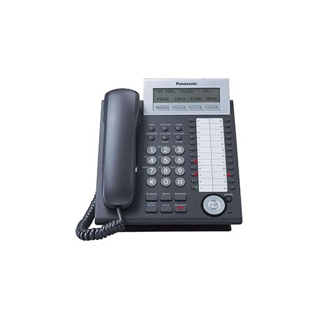 Il Panasonic digitale KX-DT333 è un telefono da postazione con display inclinabile a 3 linee. Integra 24 tasti con LED luminoso